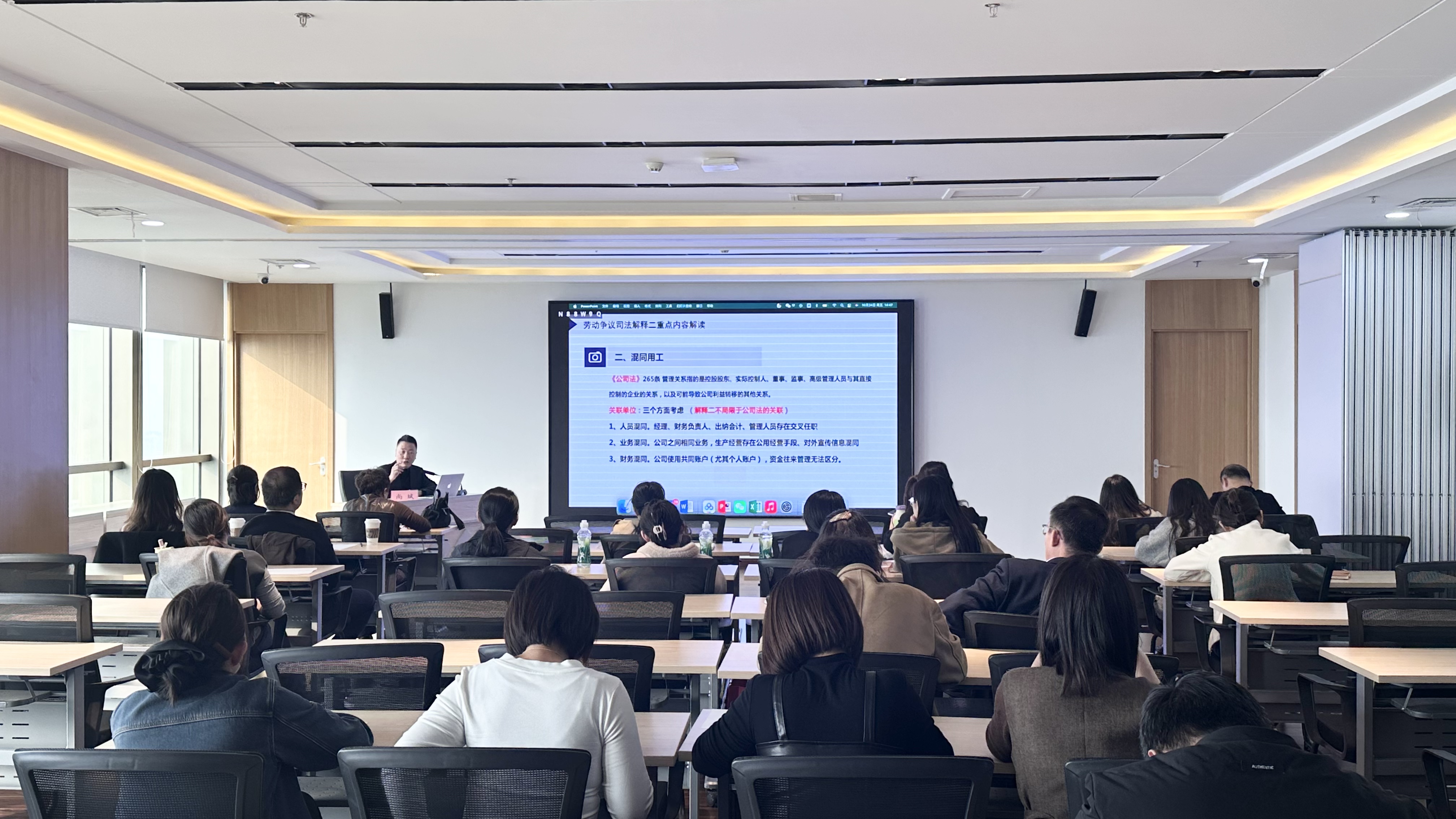 2025 年 10 月 24 日,天津华盛理律师事务所高级合伙人尚斌律师,在天津华盛理律师事务所报告厅,为30 余家合作单位开展最高法劳动争议司法解释(二)解读分享会,旨在为企业用工风险防范提供专业指引。