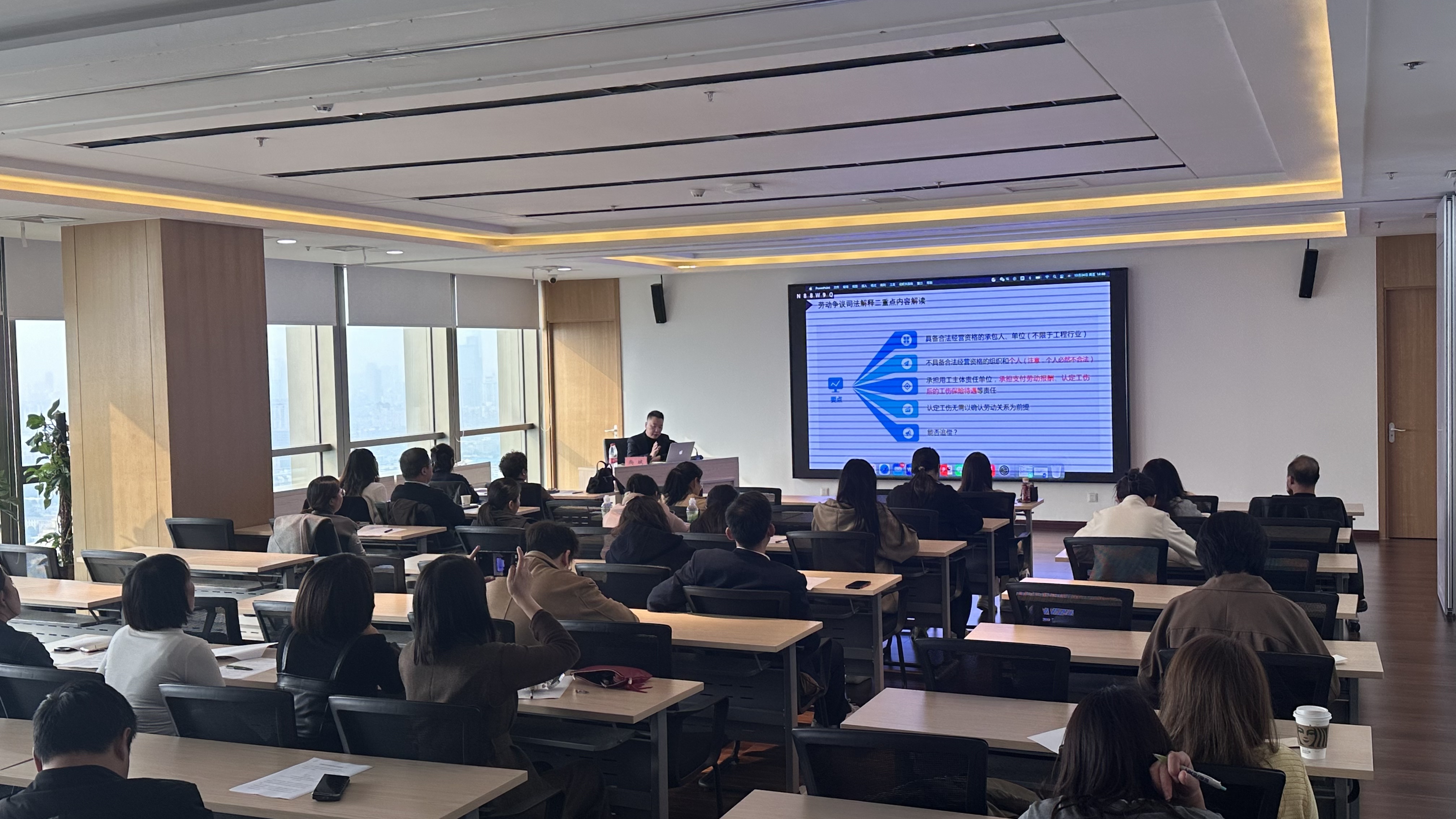 尚斌律师结合近年典型劳动争议案例与自身实务经验,围绕劳动争议处理中的 14 项核心议题展开解读,内容兼具法律专业性与落地实操性,现场不时出现参会代表记录要点的场景,整体反馈获得高度认可。解读中,他针对用工主体责任界定、混同用工关系认定、涉外用工合规标准、未签合同二倍工资争议、职业病劳动者等特殊群体权益保障、仲裁时效适用规则等关键领域,简要梳理司法解释核心要点与企业应对实操建议。