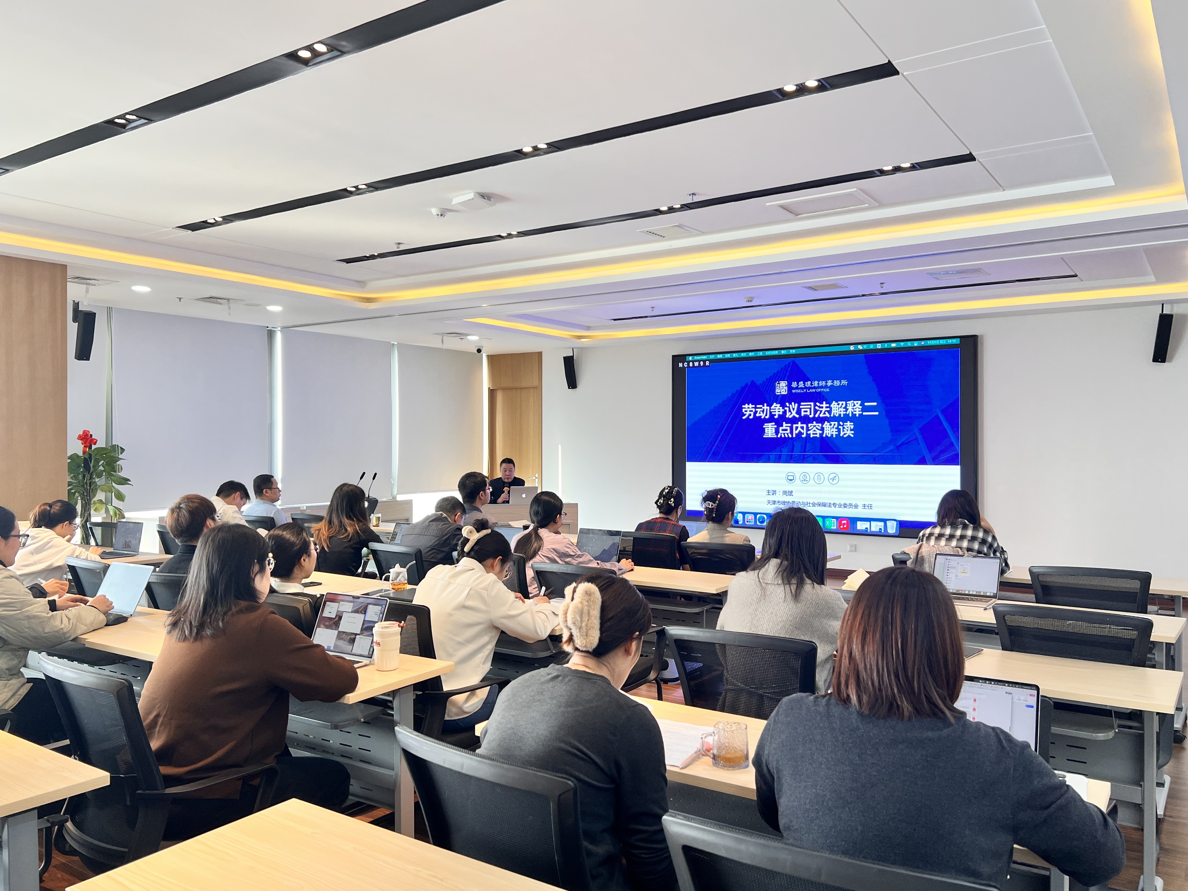 2025年11月5日,天津华盛理律师事务所在会议室召开了以《劳动争议司法解释二中热点难点解析》为主题的“华课堂”内部培训会,此次培训由事务所合伙人尚斌律师主讲,与所内律师分享新规要点,对相关法律规定进行深度解析,旨在提升律师们劳动争议案件办理的专业素养与实操能力。